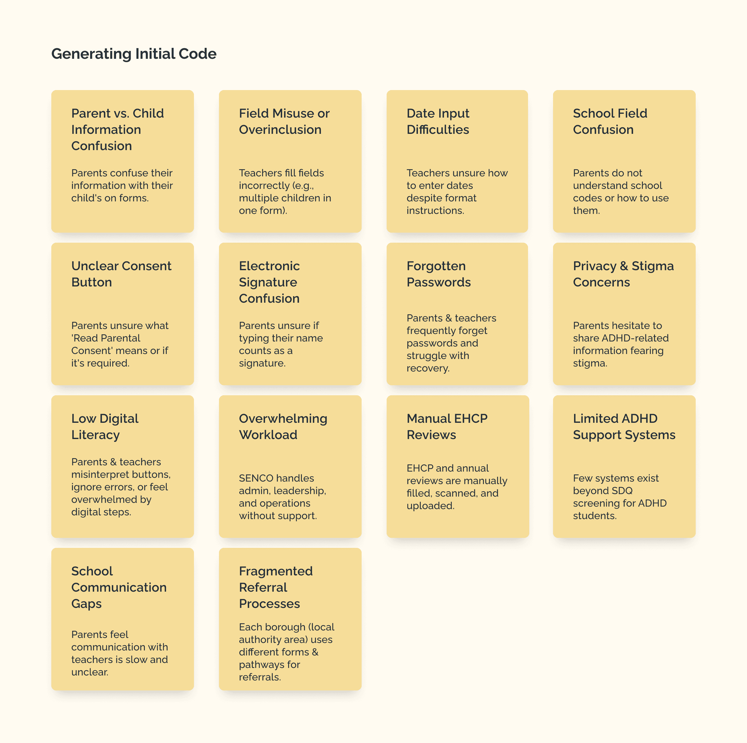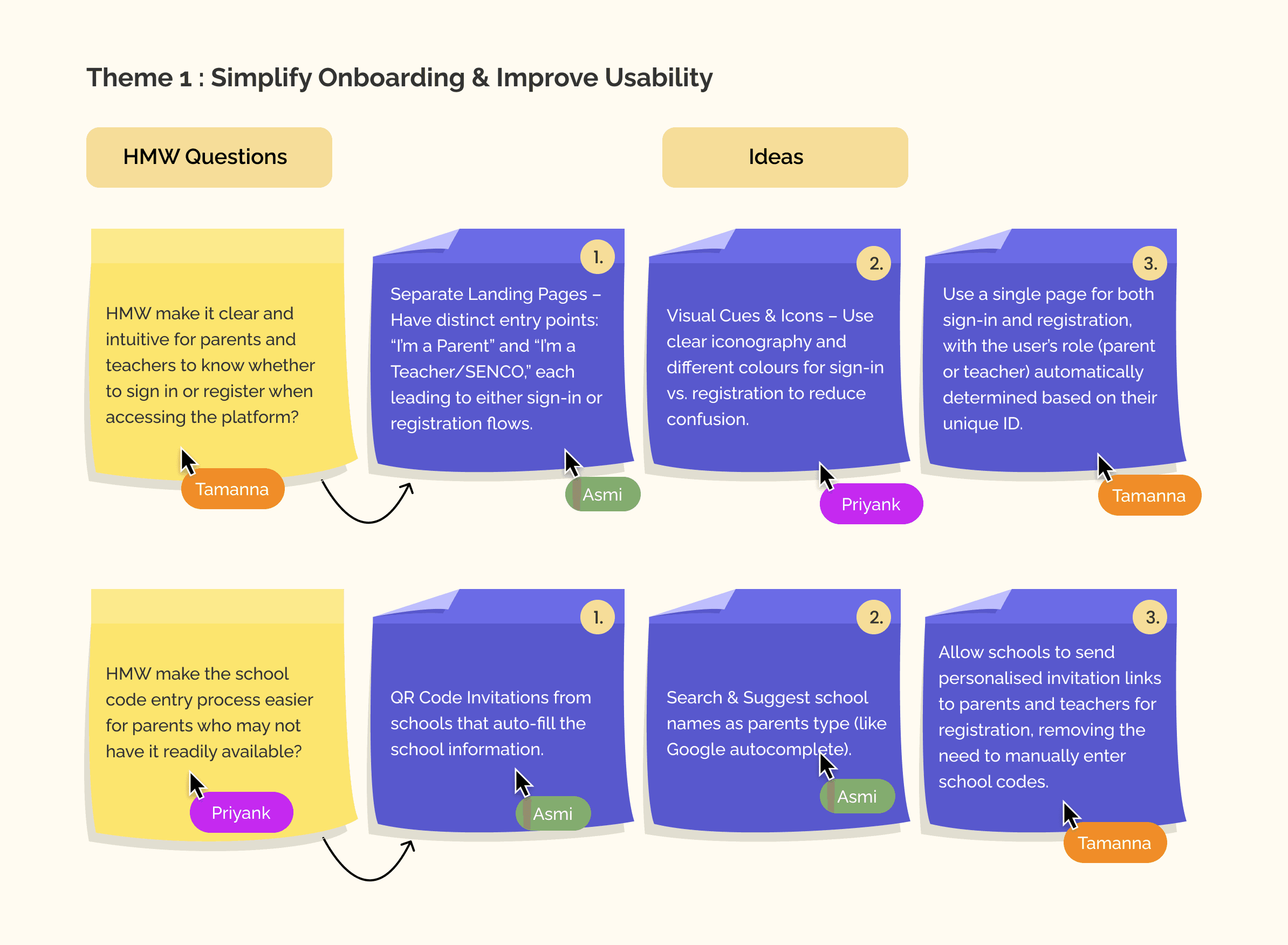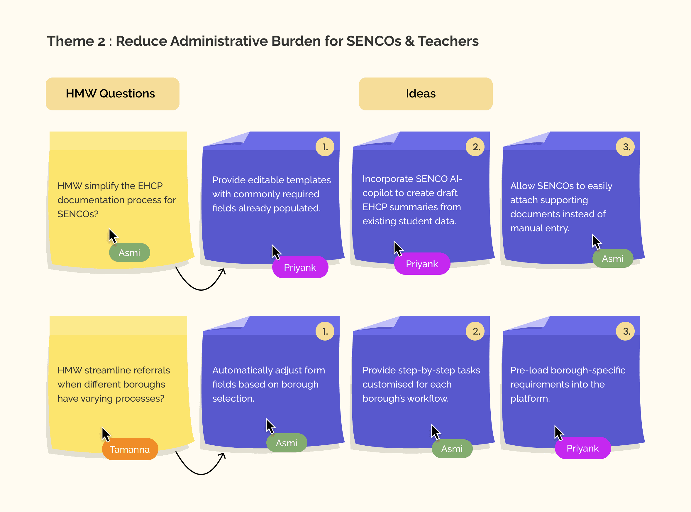 Our research clarified the real problems across SENCO, teacher, and parent journeys. Before jumping into structure or UI, we transformed these insights into opportunity areas that would guide our ideation.