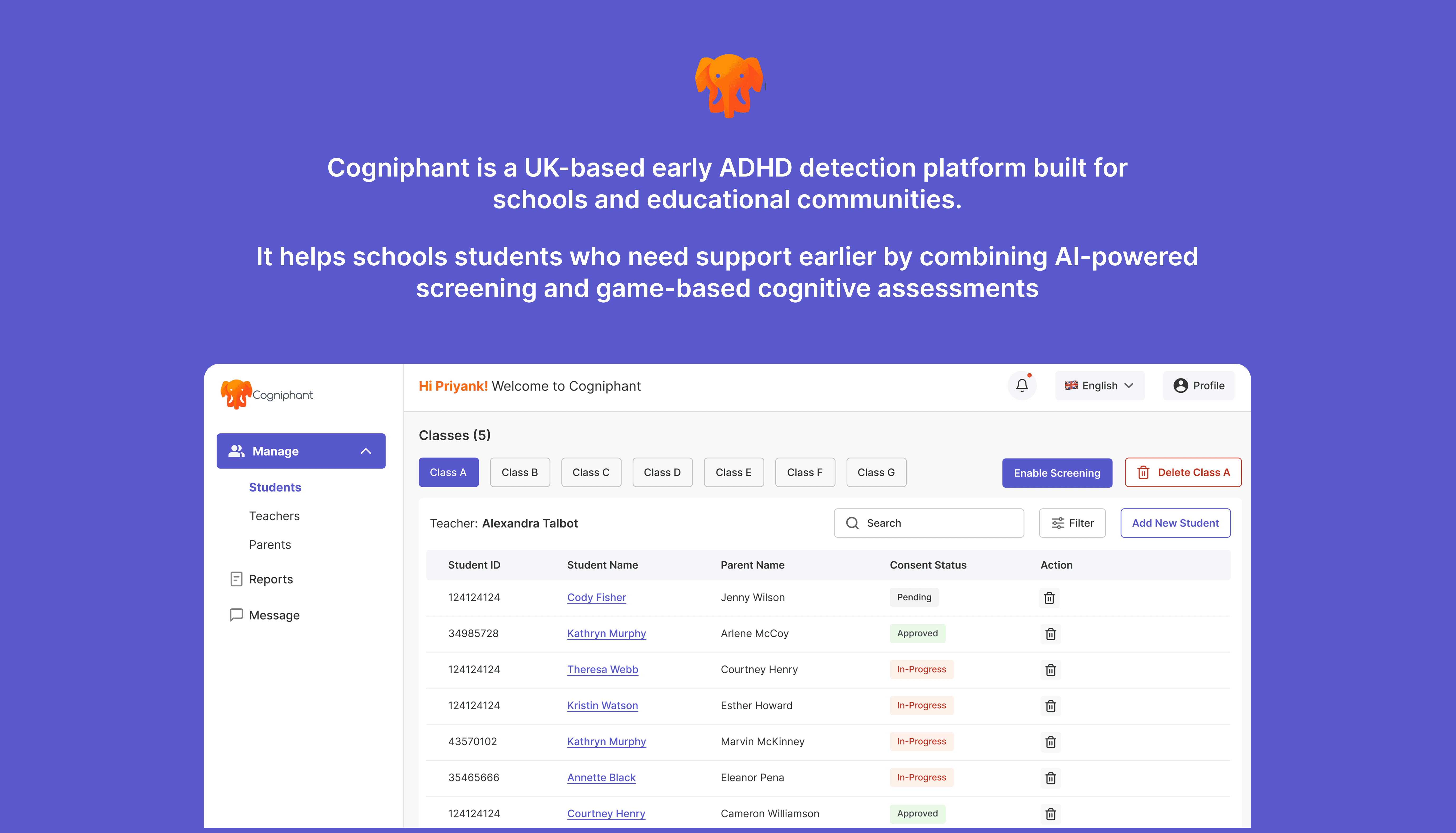 Cogniphant is an early-stage platform used in UK schools to support students with SEND needs. At the time of the project, it consisted of only two disconnected features with no dashboards, role-based workflows or collaboration tools to connect SENCOs, teachers, and parents.