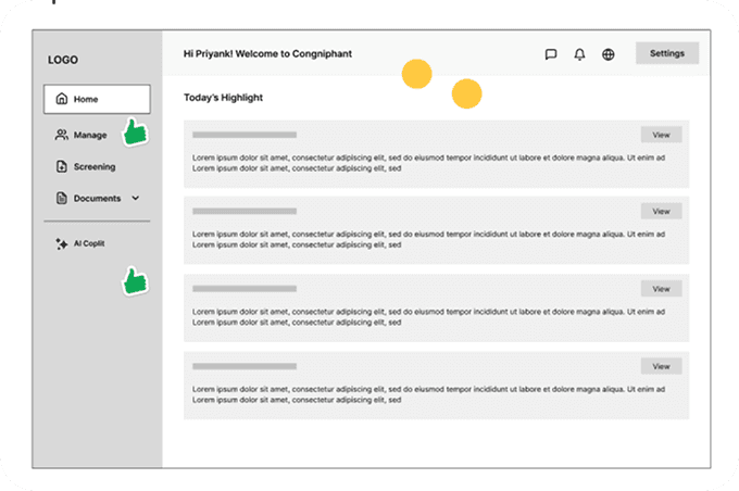 These insights helped inform Cogniphant’s UI patterns, reporting structure, and dashboard layouts.